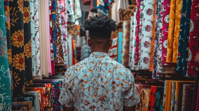 Young man in blue plaid shirt examining mattress quality in modern showroom, showcasing attention to detail in bedding selection and comfort testing.