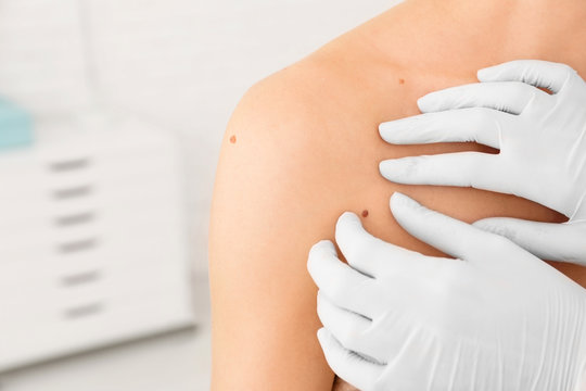 Doctor examining birthmarks and moles patient. examination of birthmarks and moles.the doctor examines the patient's mole