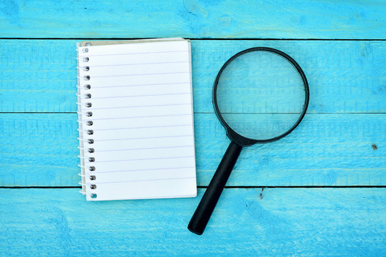 Magnifying glass and notepad
