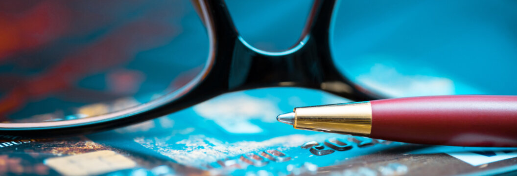 pen and glasses on credit card