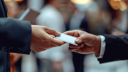 Two individuals exchanging a smartphone on a bustling city street during twilight hours