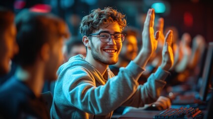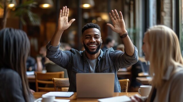 Excited Software Developer Celebrating Successful Code Deployment Images