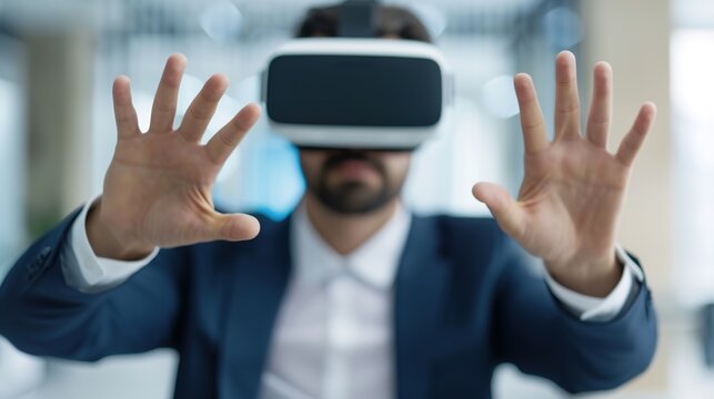 Visionary Executive Embracing Cutting-Edge Technology in an Immersive Virtual Reality Experience