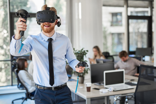 Executive Experiencing Virtual Reality Technology In Modern Office Images