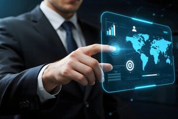 Businessman Using Digital Interface to Analyze Data in High-Tech Environment