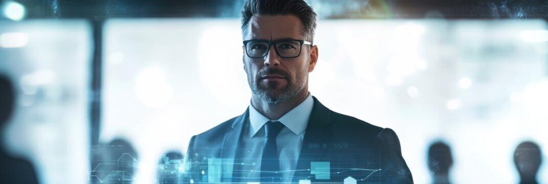 Executive Analyzing Holographic Business Data