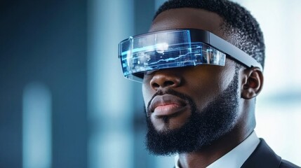 Professional Man Wearing Futuristic Augmented Reality Glasses