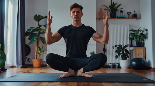 Man experiencing tranquility during outdoor exercise at home