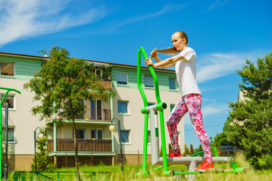 Outdoor sports ground with weight training equipment for sports. Sports and recreation area in a modern courtyard.