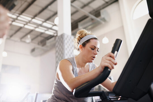 Individuals perform different workouts including stretching, strength training, and cardio exercises in a colorful indoor setting. Each participant showcases distinct movements and techniques.