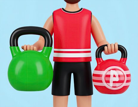 Cartoon character holding kettlebells