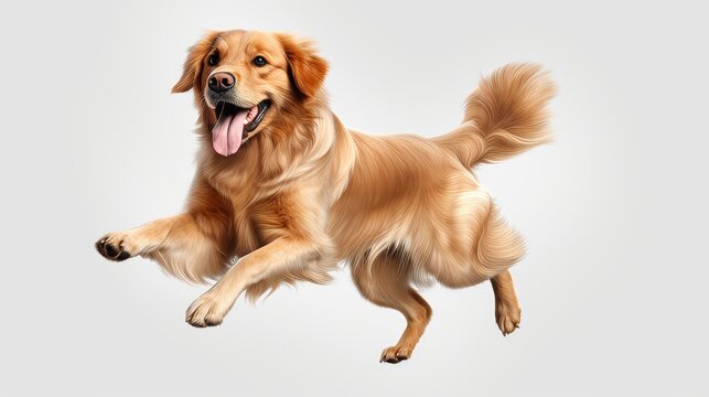 Playful golden retriever in midair  joyful canine actions for pet themed designs