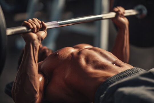 Strong Person Lifting Barbell During Fitness Training in Gym in the Evening With Focus on Upper Body Strength