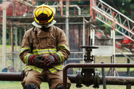 portrait of a fireman tired, dirty, sweaty, exhausted after a fire