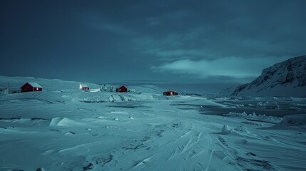 Real photography, Arctic glaciers, red houses in the distance, lights, snow, auroras, --ar 16:9 --v 6 Job ID: d829f3f4-b87b-409d-b9c8-bd906cedf37f