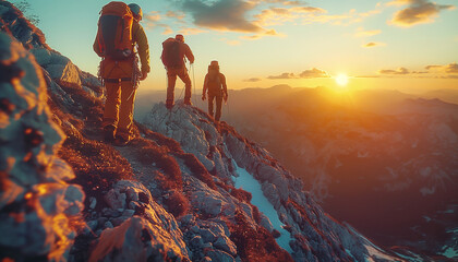 Man Traveler with backpack mountaineering Travel Lifestyle concept lake and mountains on background Summer expedition vacations outdoor