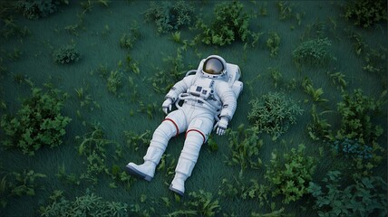 Astronaut lying on ground representing space exploration concept