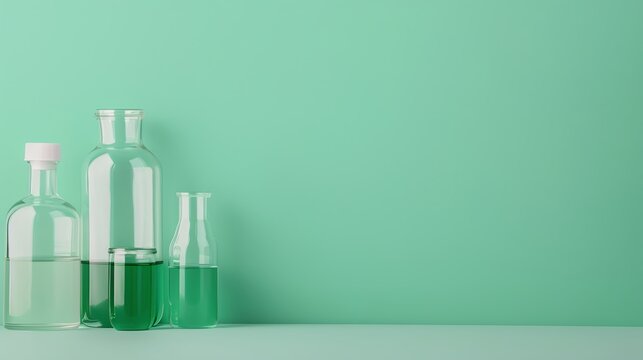 A clean laboratory environment with glassware and a marble countertop, perfect for experimental and scientific imagery.