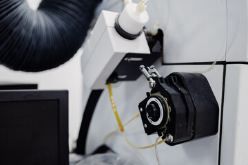 Modern scientific equipment creating a sphere. Laboratory research and development in a precise manufacturing and experimental environment.