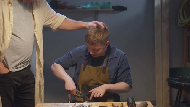Expert Shoemaker Crafting And Repairing Shoe In Workshop Images