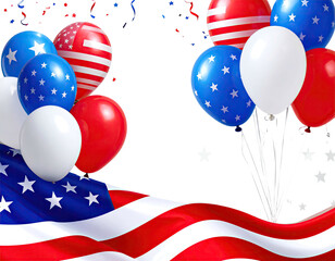 Patriotic celebration with american flag, fireworks, and balloons