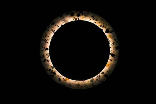 Immersive red concentric tunnel emitting led glow with dark central aperture
