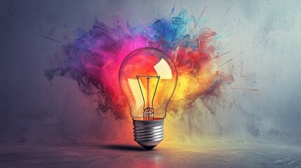 Illuminated light bulb surrounded by vibrant colored. Creativity and inspiration