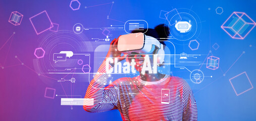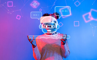 Explore an immersive virtual reality experience showcasing the intersection of AI technology and chatbot interaction in a vibrant, futuristic digital landscape. XDMCP