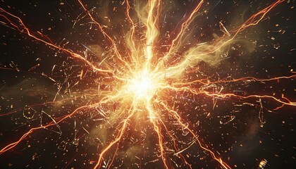Vibrant glowing explosion in dark space with embers