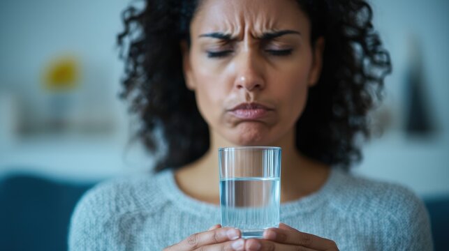 Woman expressing distress with hands on her face in a neutral setting. Generative AI