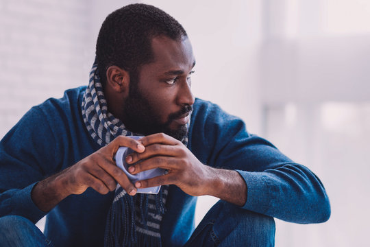 Contemplative senior man relaxing indoors with thoughtful expression