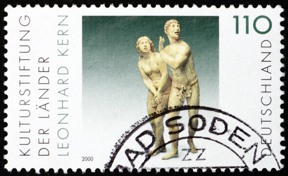 Postage stamp Germany 2000 the Expulsion from Paradise, Sculpture by Leonhard Kern, was a German sculptor
