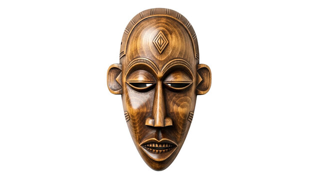 Close up of an eye on an african tribal mask. Ancient wooden carving details. Concept of african art, culture, and shamanism on display.