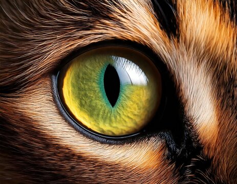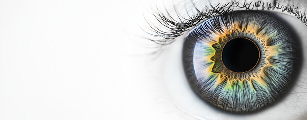 Extreme closeup revealing intricate details of a human eye iris, pupil, and eyelashes. Vibrant colors and textures are showcased.