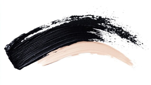 Black liquid eyeliner pen with felt tip and brush strokes on white paper for makeup application and cosmetic branding