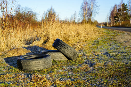 used car tires dropped on the side of the road, crime against nature