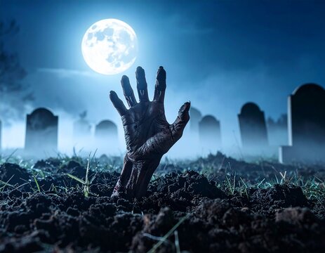 Main de zombie émergeant du sol – horreur réaliste et ambiance Halloween
