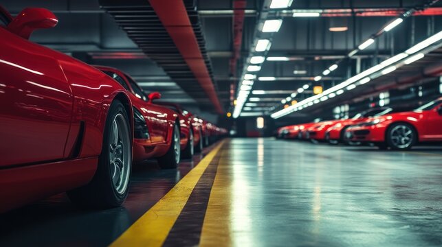 Car production line with cars on the factory floor, wide-angle lens, 24mm f/8, high-resolution photography.