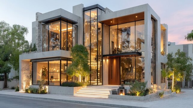Striking structure with full glass fa? section ade, showcasing clean lines and contemporary design