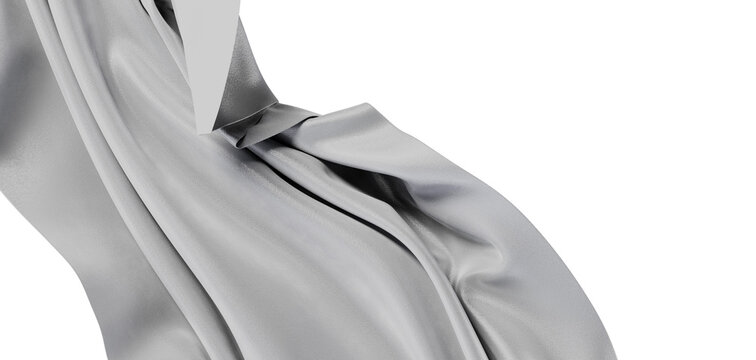 Abstract macro shot of light grey fabric with folds and details. Soft textures, gentle shadows, and fluid shapes create