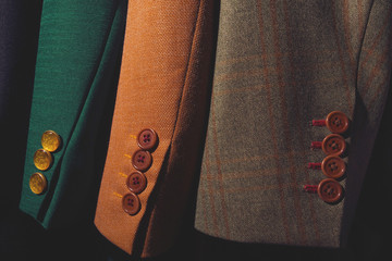 Hands of designer, clothes rail or choice in studio, workshop or small business for sample, show or collection. Creative woman, closeup or decision for design, fabric or clothing fashion in store
