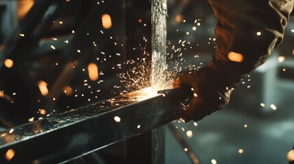 Metal fabricator cutting and shaping steel beams in a workshop. Featuring skill and precision