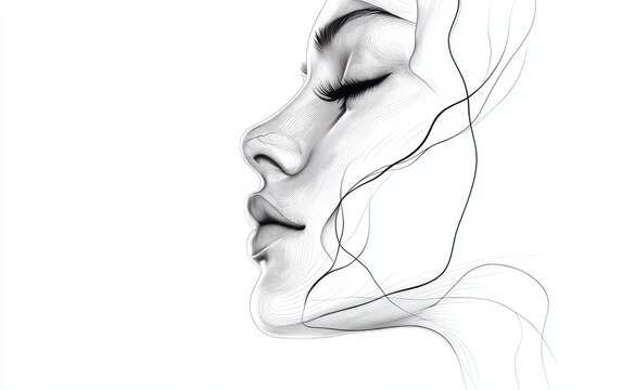 Delicate, flowing lines gracefully form the outline of a female face against a neutral backdrop, embodying abstract artistic expression. Generative AI