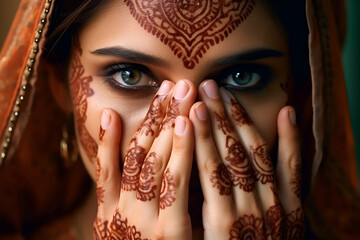 Close up of a woman with hands over her face showing signs of distress and worry : Generative AI