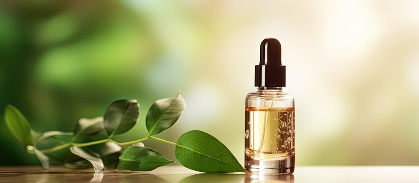 Beautiful woman applying essential oil on her face for hydrated skin using pipette dropper. Facial skin care with treatment essential oil and serum