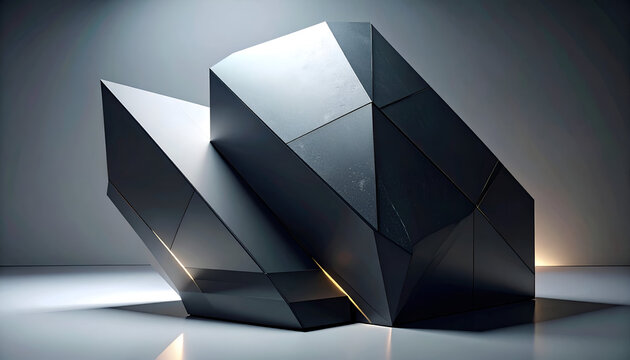 Faceted Monolith: A Dark Geometric Sculpture with Glowing Golden Fissures