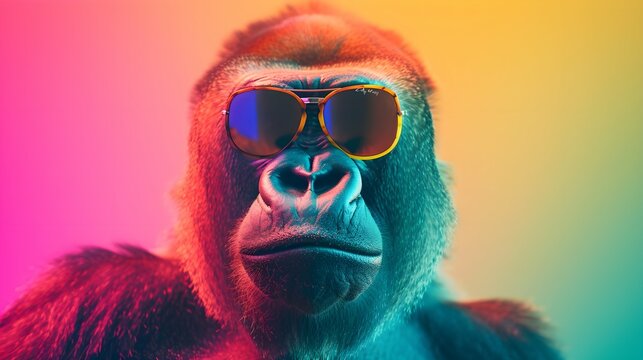Gorilla on a colorful gradient background, vector art, digital art, faceted, minimal, abstract, panorama background.