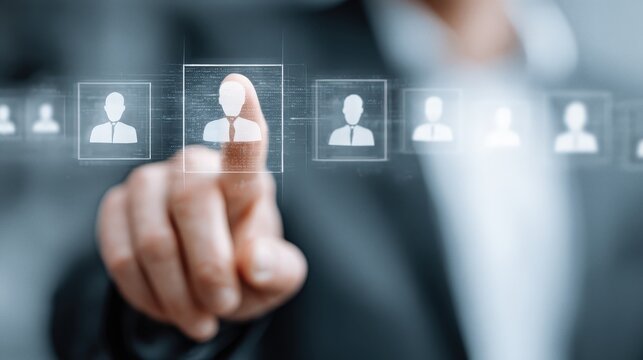 a futuristic depiction of facial recognition technology and ai powered candidate profile analysis within a modern and technologically advanced office setting high quality