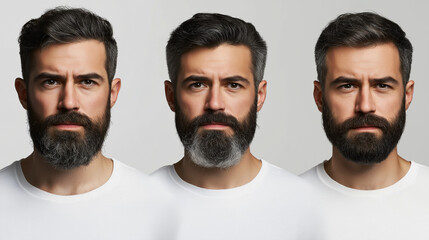 Three bearded men in white shirts facing forward