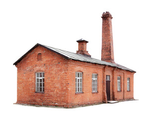 vintage factory building with brick walls and tall chimney stands isolated against transparency background, showcasing its rustic charm and historical significance